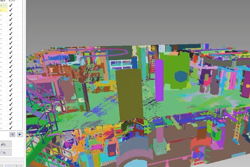点群を切り分けて意味を持たせる 広い範囲を3Dレーザースキャナーで計測した点群データは、何億もの点からなる巨大…